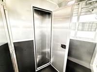 The stock area is built for ease of use and animal safety, with 48" through-and-through escape doors on both sides, a center gate, hoof grip flooring for secure footing, and butterfly rear doors for smooth loading and unloading. Additional premium features include a hydraulic jack, quick release coupler, brush fenders, and tie rails on both sides and inside the stock area. Whether you're headed to a show, pasture, or sale barn, this Eagle X stock combo is ready to go to work.