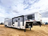 Features:This remarkable 2026 Elite 6 horse with a double door reverse load with a large ramp has a telescoping divider in the first slant, air flow dividers, roadside escape door, mangers with under manger storage and drop-down windows on both the head and tail side. The full rear tack room has 2 4-tier saddle racks, a hat shelf, blanket bars, boot bars, brush boxes and lots of bridle hooks. The 10'8" living quarters features a queen-sized bed in the bedroom along with 3 closets and a television. The living area has a sofa-sleeper, entertainment center with a smart television and a full kitchen that contains a sink, recessed cook top, and large refrigerator. The fully private bathroom has a radius shower, double hanging closet, sink with vanity and mirror and a walk-through door into the horse compartment. Additional features include a hydraulic jack, integrated hay pod, diesel generator, and an electric awning. This trailer has a floor length of 36'.