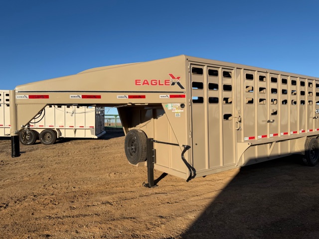 Features:This 20' Eagle X stock combo trailer is the perfect blend of practicality and versatility, designed to meet the needs of both livestock haulers and horse owners. It features a spacious 6' tack room with dual access points—a double roadside door for full access and a single 4' curbside door for quick entry. Inside the tack room, you'll find two 3-tier swing-out saddle racks, blanket bars, bridle hooks, brush boxes, and calf gates in the nose, offering exceptional organization and storage.