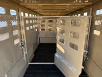 Features:This 36' stock trailer has 3 cut gates, with the front gate having a 1/2 slider, there is a 50" roadside escape door, calf gates in the nose, an extra 2" side vent cut out for optimal air flow and a full rear door with a slider.