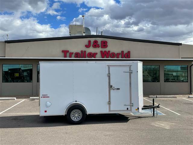 Description: | J&B Trailer World-Cargo Mate 6x12SA V-Nose Cargo Trailer, 2990# GVWR, 3.5K drop axle, RADIAL TIRES, LED LIGHTS, sidedoor flush lock and cam bar lock for added security, LED lights, 3/8" plywood walls, 3/4" plywood floor, diamond plate V-Front and Diamond plate rear trim, aero flow venst, domelight, diamond plate aluminum fenders, stoneguard, rear stabilizer jacks and more. Cargo Mate Trailers are now 90% screw less. Screws are at the seams only and bonded on all other vertical uprights. Call for current colors in stock and available. FINANCING AVAILABLE!! |