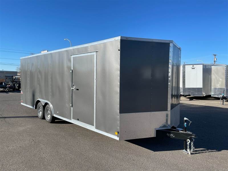 Description: | J&B Trailer World -Cargo Mate 102x24-10K GVWR, 7' tall -10000# GVWR -5.2K 4" drop axles w/4 wheel brake -ST225-75-RADIAL Tires -030 aluminum skin -TRAILER IS 90% SCREWLESS. SCREWS AT SEAMS ONLY -3/4" plywood floor and 3/8" plywood walls -6" Ibeam main frame -2"x6" structural tube tongue -One piece Aluminum roof -12V interior lights w/wall switch -Roof vent -24" stone guard -48" Sidedoor w/flush lock and cam bar lock -7' tall -Built in beaver tail -Ramp door -2-5/16" coupler -2K top wind jack -Rear header trimmed in aluminum diamond plate -Diamond plate fender flares We stock this trailer in different colors. Call for current colors available. Delivery and financing available!! |