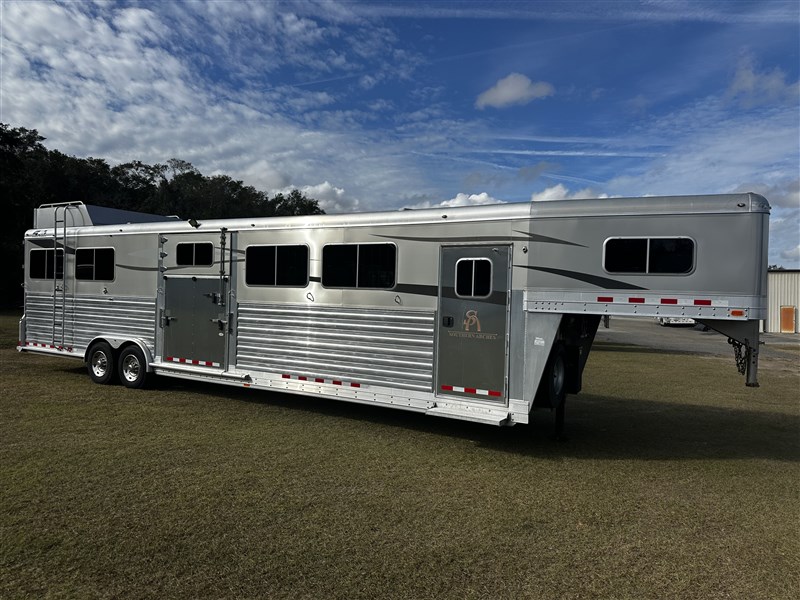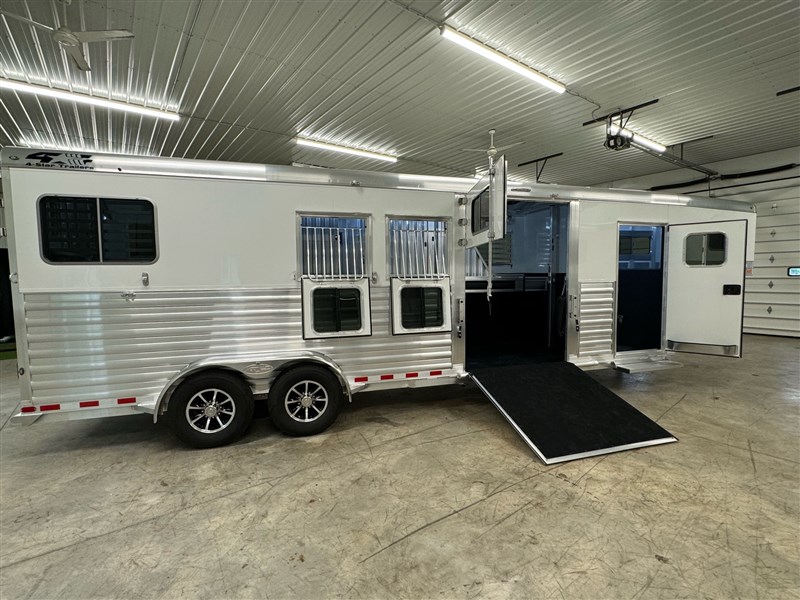 Deluxe Models These are our top of the line models. Generously equipped with all the most commonly desired features, they represent the pinnacle of 4-Star quality and innovation. Trailers built on the Deluxe platform are designed to be extremely customizable. Length, Width, and Height may be added to or subtracted from the base models. Individual stall sizes may be specified. Our entire catalog of options is available for inclusion in these trailers. If you don’t see an example of what you require in the pages of our website or on your dealer’s lot, please ask for it. We are always open to new ideas. If you have a unique transportation problem, we can engineer a unique solution for it based on this versatile platform.