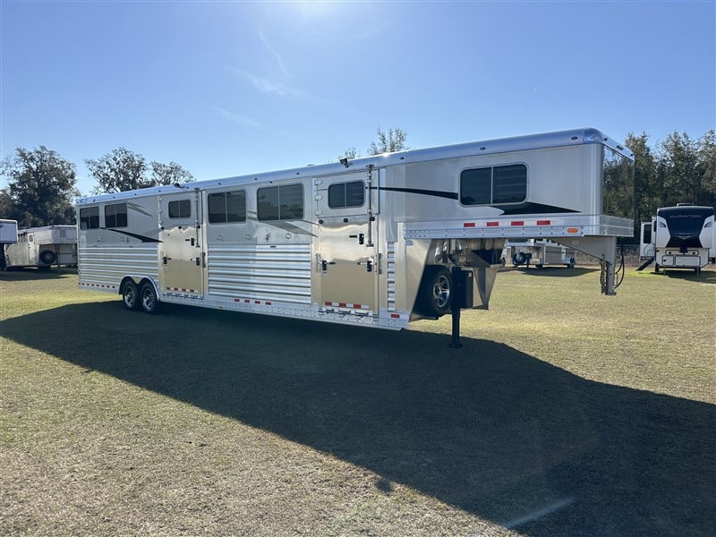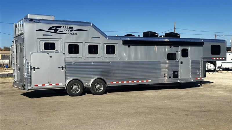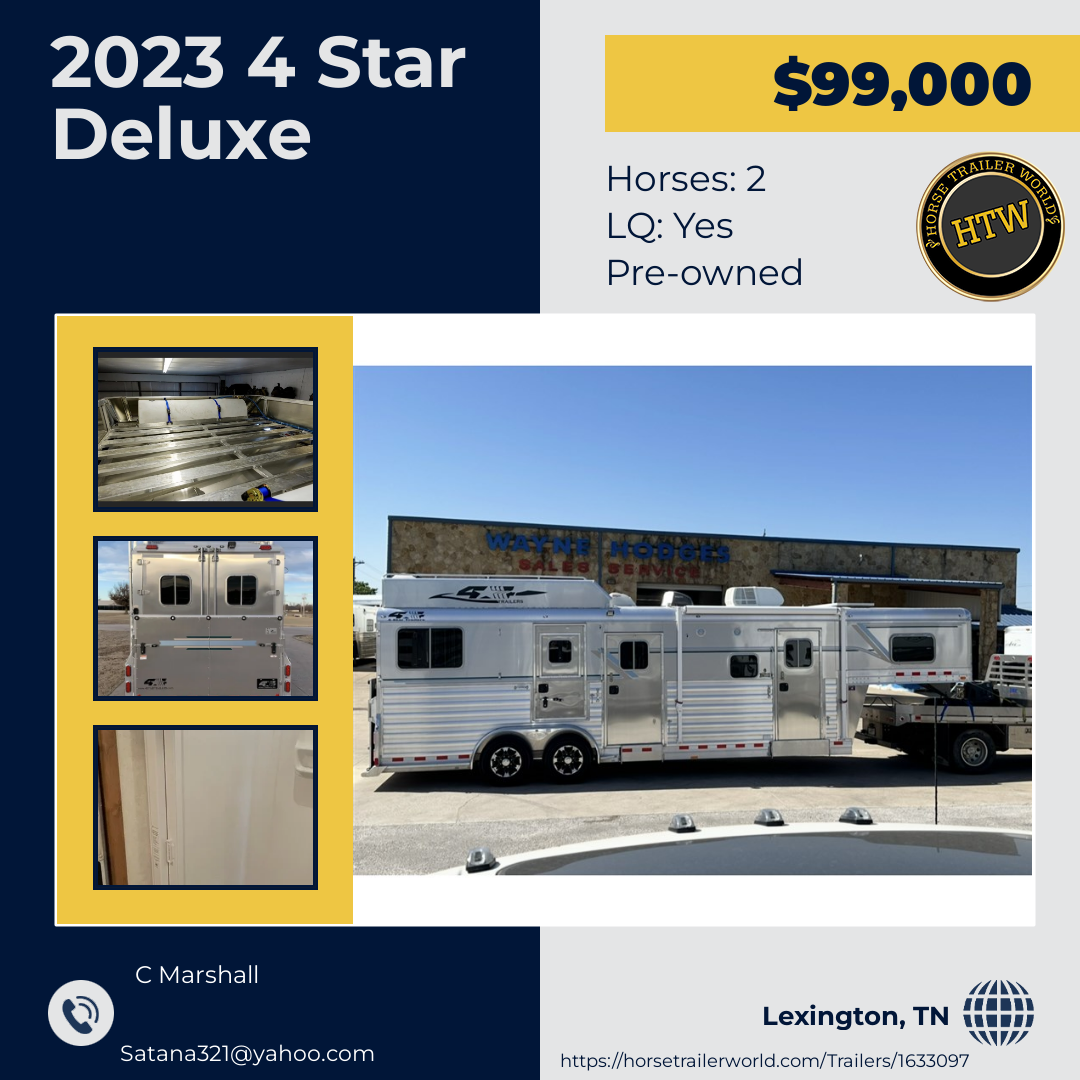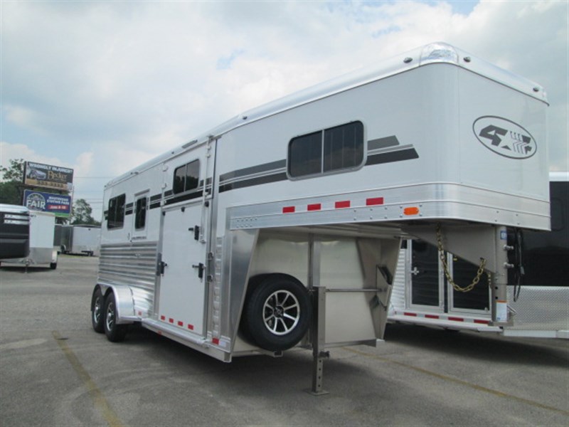 Since 1984, 4-Star has been the respected leader in manufacturing the most sophisticated and technologically advanced custom-built horse trailers in the world. Like their new "Quiet Ride" trailer. Located in Oklahoma City, Oklahoma 4-Star has established the all-aluminum trailer as the industry standard for ease of maintenance and overall superiority. 4-Star Trailers is a proud, certified member of the National Association of Trailer Manufacturers.4-Star offers Gooseneck and Bumper Pull Trailer Models in the following categories: Horse, Stock/Combo, Stock, Polo, and Cargo/Car Hauler. Trailer models are offered in three base model platforms: Deluxe, G Model, and Runabout. Each is briefly described below.