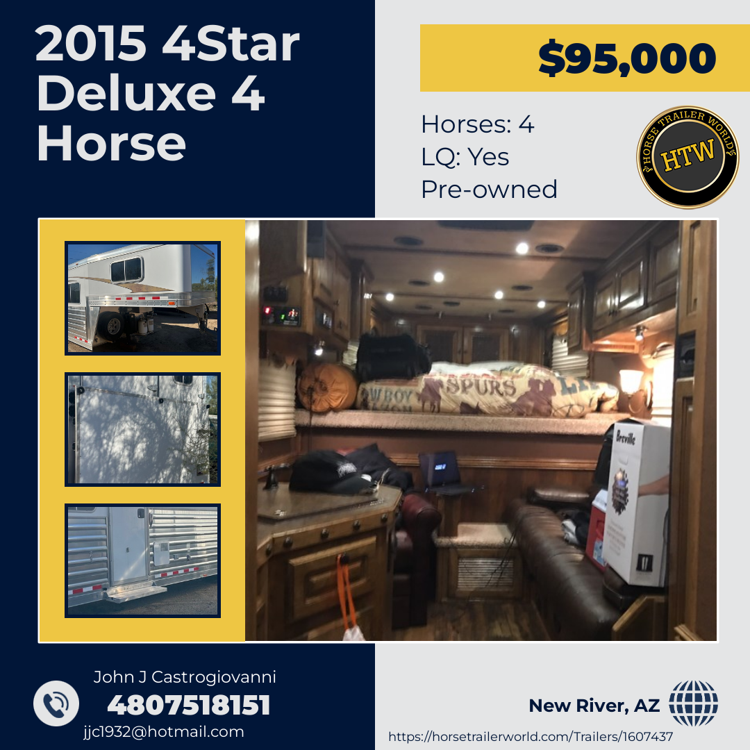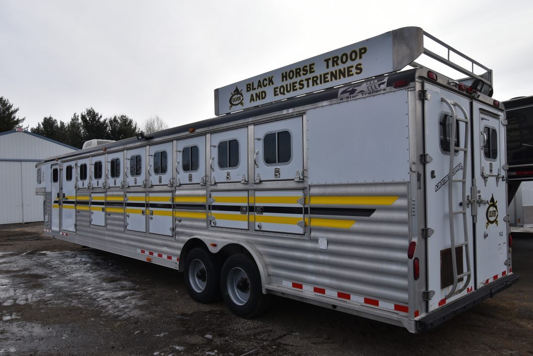 Since 1984, 4-Star has been the respected leader in manufacturing the most sophisticated and technologically advanced custom-built horse trailers in the world. Like their new "Quiet Ride" trailer. Located in Oklahoma City, Oklahoma 4-Star has established the all-aluminum trailer as the industry standard for ease of maintenance and overall superiority. 4-Star Trailers is a proud, certified member of the National Association of Trailer Manufacturers.4-Star offers Gooseneck and Bumper Pull Trailer Models in the following categories: Horse, Stock/Combo, Stock, Polo, and Cargo/Car Hauler. Trailer models are offered in three base model platforms: Deluxe, G Model, and Runabout. Each is briefly described below.