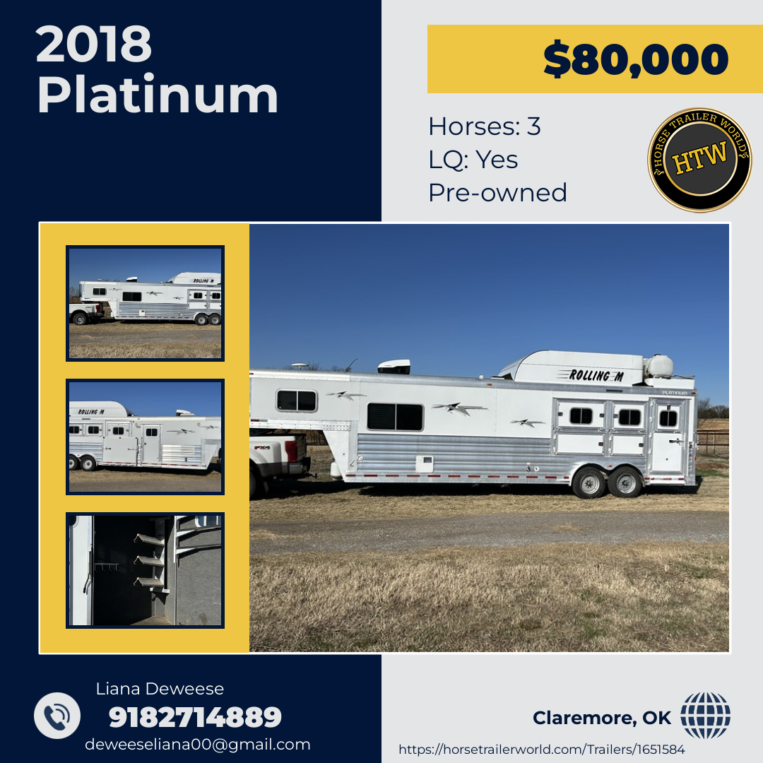 3 horses, Gooseneck, Living quarters | $49,995 | NC | |