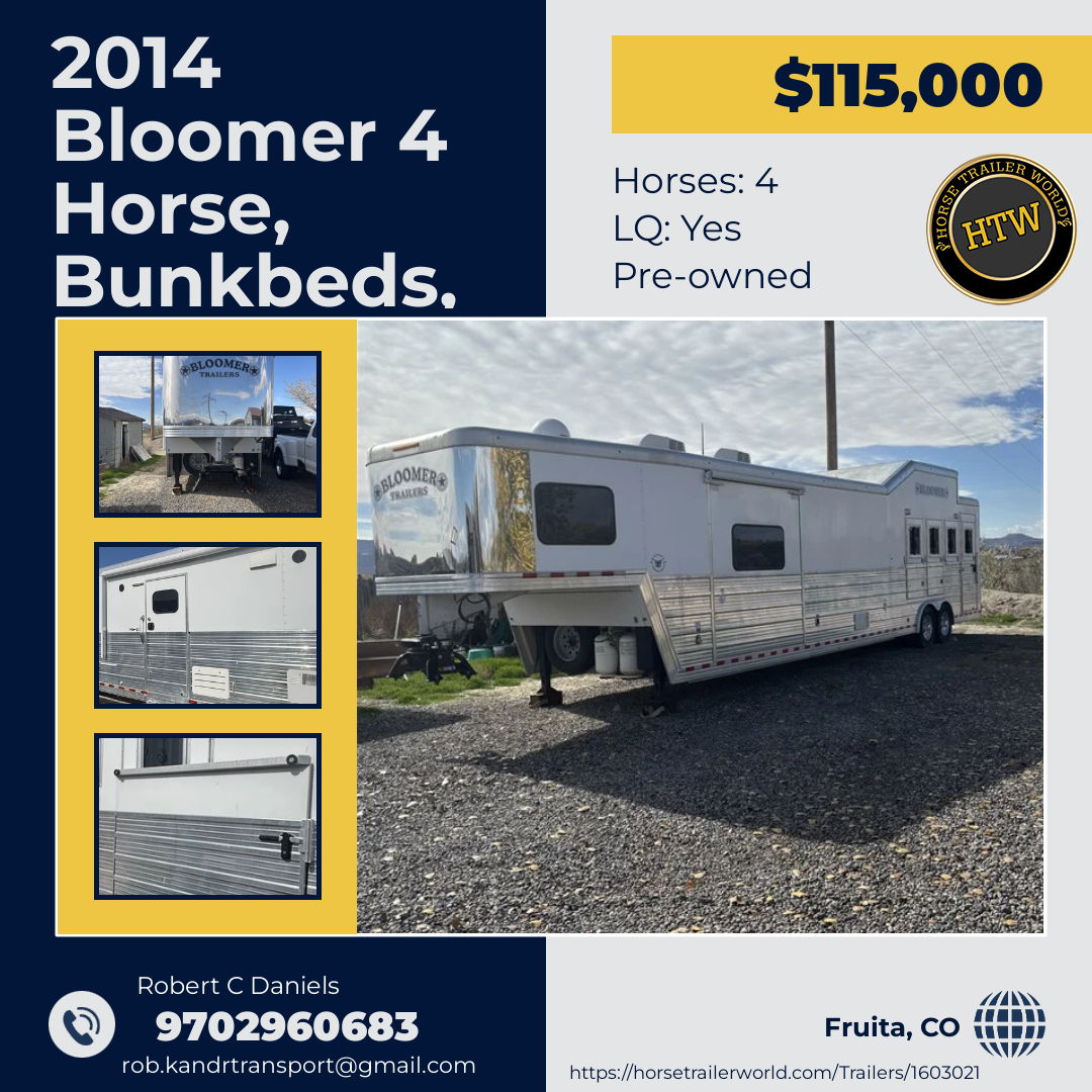 2014 Bloomer 4 horse, bunkbeds, reverse load, air ride!!