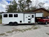 EXCELLENT CONDITION still smells NEW used 2022 Bison Silverado model: SV7311.S ALL ALUMINUM! 3 Horse 7’ Wide 11’ Living Quarters w 6’ powered slide out & aluminum load ramp!!! This trailer is gorgeous with a bright and airy interior. Nescopeck, PA |