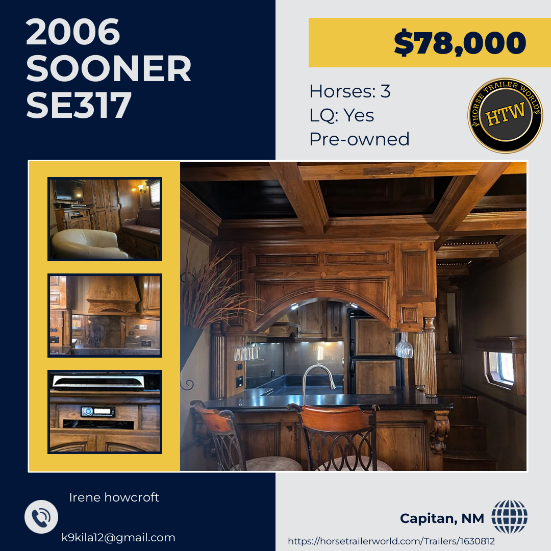 This Trailer was custom built by Sooner as a demo model for the largest horse trailer show in the United States. Sooner used a company who builds interiors for executive private jet. It is stunning. Capitan, NM |