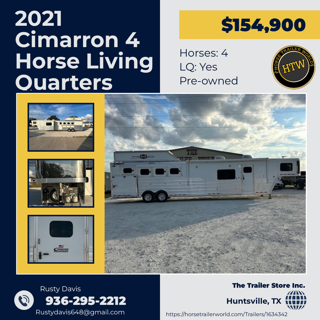 2021 CIMARRON 4-HORSE LIVING QUARTERS – LOADED & READY!