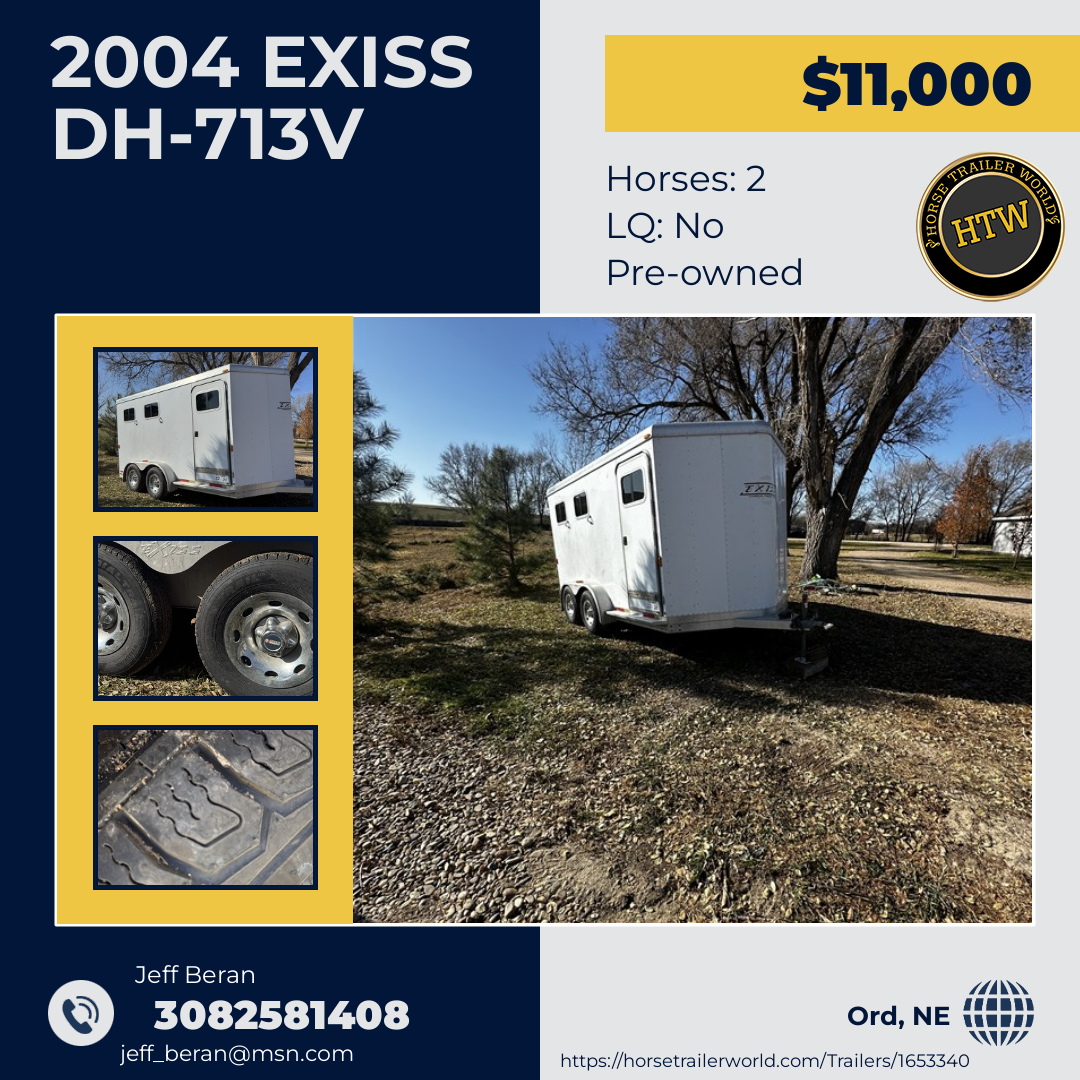2004 Exiss, 2 horse slant load trailer with front tack room. New tires and other upgrades recently. Ord, NE |