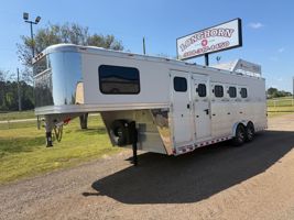 3H slant with 14' lq with center entertainment. Trailer has always been stored inside. Outside kitchen with w/extra propane hookup. 20 ft awning. 8K axles, enclosed nose, outside under manger storage. full width rear ramp. Milan, IN |