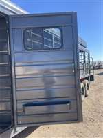 Used 2023 Swift Built 28' Stock Combo 5 horse with dividers, a smart tack and poured in rubber floor in the horse area. The trailer features a locking hitch, spare tire, load lights, extra running lights and a 48" escape door. Trailer has a hay rack, electric jack, full running boards with steps, 8k axles, 14 ply tires, extra running lights, double taillights with grill covers, double back doors with 3 latches and a 3" pipe bumper. The smart tack is equipped with double doors, 6 saddle trees, bridle hooks on the doors, and brush trays. This is a ranch tough trailer!
