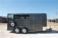 2026 CALICO 3 HORSE SLANT, 17 X 6'8" X 7' TALL, DROP WINDOWS WITH BARS ON THE HEAD SIDE, FULL HEAD AND SHOULDER DIVIDERS, ESCAPE DORR FIRST HORSE, TREATED WOOD FLOOR WITH HEAVY DUTY MATS, KICK LINING ON THE TAIL SIDE, FULL SWING EASY LOAD REAR GATE, WALK IN TACK ROOM WITH 3 TIER SWINGOUT SADDLE RACK, FLOOR MATS, TACK HOOKS AND LIGHT, OUTSIDE ALL L.E.D. LIGHTING, TORSION AXLES WITH ELECTRIC BRAKES, $12,900 FINANCING AVAILABLE W.A.C. CALL RICKY 817-279-3655 209 E HWY 82 NOCONA TX 76255 circlebtrailerstexas.com