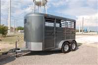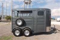 2026 CALICO SLANT 2, 13' X 6' X 7' TALL, 54" SOLID SIDES WITH OPEN AIR SLATS ABOVE, FULL HEAD AND SHOULDER AIRFLOW DIVIDER, TREATED WOOD FLOOR WITH HEAVY DUTY MATS, KICK RUBBER ON THE TAIL SIDE, EASY LOAD ONE PIECE REAR GATE, ESCAPE DOOR ON THE FIRST STALL, WALK IN TACK ROOM WITH 2 TIER REMOVABLE SADDLE RACKS, TACK HOOKS AND MATS, L.E.D. LIGHTING, TORSION AXLES WITH ELECTRIC BRAKE, 16" RADIALS INCLUDING THE SPARE, 1 YR WARRANTY, $9450 FINANCING AVAILABLE W.A.C. CALL RICKY 817-279-3655 CIRCLE B TRAILERS 209 E HWY 82 NOCONA TX 76255 circlebtrailerstexas.com