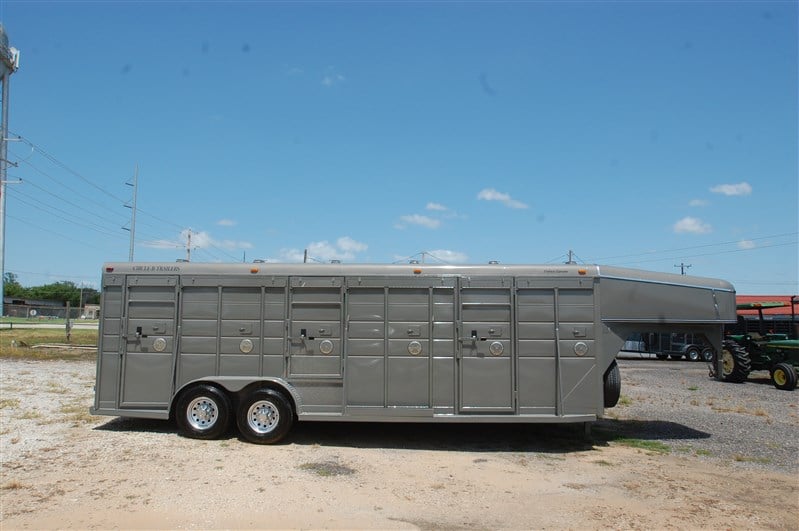 2025 EXOTICS EXPRESS 24 X 6'8" WIDE X 7' TALL GOOSENECK , 6 COMPARTMENT, BUCK CUTS THAT DIVIDE EACH CUT, STORAGE RACK ON OUTSIDE, MATS ON THE FLOOR, ESCAPE DOORS ON EACH STALL, ROOF VENTS, BLACKOUT DOORS, AC READY, IN STOCK AND READY TO ROLL, FINANCING AND DELIVERY AVAILABLE