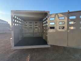 Features:This punch sided steel, 24' Eagle X stock trailer comes with 2- center gates with sorting doors, a full rear door with a slider, 48" roadside escape door, brush fenders, cleated rubber flooring, and dual 7,000# axles. Additional features include calf gates in the nose, and a quick release coupler. This trailer is 78" tall, 7' wide and a 24' floor length, in the color desert tan.