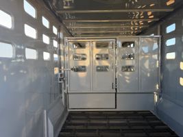 Features:This 36' stock trailer has 3 cut gates, with the front gate having a 1/2 slider, there is a 50" roadside escape door, calf gates in the nose, an extra 2" side vent cut out for optimal air flow and a full rear door with a slider.
