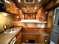 Features:This Platinum 3 horse has an Outlaw Conversion interior with a sofa-sleeper, and a queen-sized bed; along with a full kitchen set up with a recessed cook-top, sink, microwave, large refrigerator, and lots of storage space. The fully private bathroom has a corner shower, closet, sink with vanity and mirror and a walk-through door into the horse compartment. The horse area has a stud stall in the first manger, a blanket bar and bridle hooks, mangers with under manger storage. The corner rear tack features a 4-tier saddle rack, lots of bridle hooks, a fold out step, a blanket bar and a brush box. Additional features include a hay pod, generator and a hydraulic jack. This trailer has a floor length of 25'.